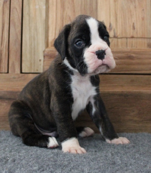 Femelle bringé foncé marqué en blanc - queue naturelle - ira à coté de lorient (56)